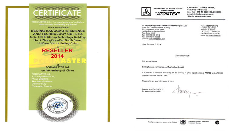 多年來,北京康高特科技有限公司通過與國外知名公司的合作,取得了*優(yōu)惠條件供應(yīng)儀器設(shè)備的資格。其中,白俄羅斯Atomtex公司和Polimaster公司的多款儀器設(shè)備一路暢銷,獲得眾多好評。今年Atomtex公司和Polimaster公司按流程對我公司進(jìn)行二次審核,根據(jù)我公司良好經(jīng)營狀況、規(guī)范經(jīng)營體系以及不斷發(fā)展壯大的規(guī)模,ATOMTEX公司和Polimaster公司延長我公司在華代理權(quán)時限。今后,北京康高特科技有限公司,將繼續(xù)為大家推出Atomtex公司和Polimaster公司高品質(zhì),低價格的先進(jìn)儀器設(shè)備。